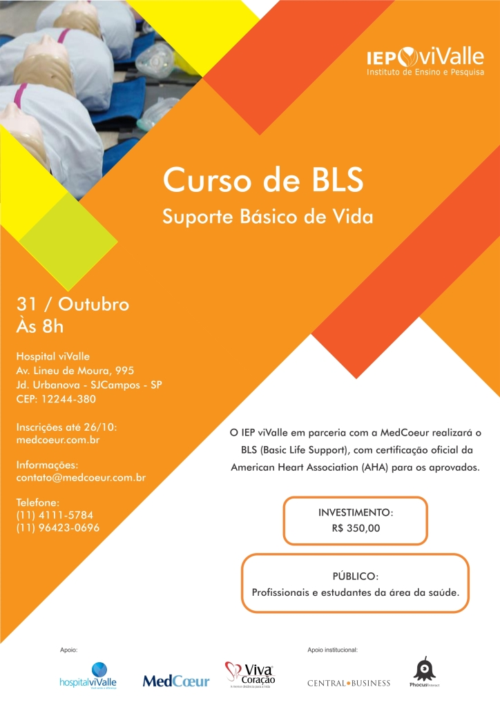 O IEP viValle em parceria com a MedCoeur realizará o BLS (Basic Life Support), com certificação oficial da American Heart Association (AHA) para os aprovados.