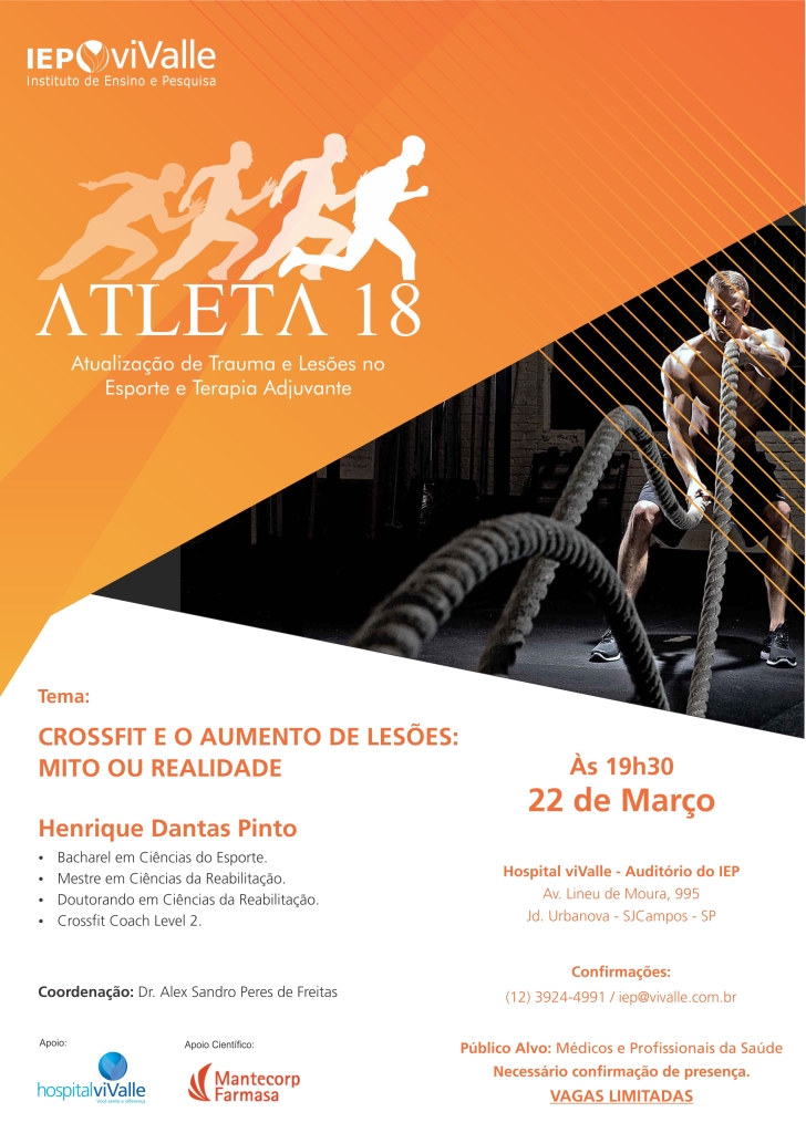 Núcleo de Ortopedia IEP viValle convida para Atleta18 - "Crossfit e o Aumento de Lesões: Mito ou realidade".