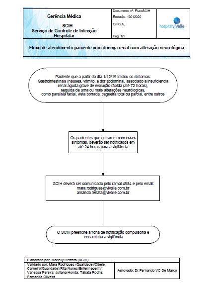 - Paciente que apartir do dia 1/12/2019 iniciou os sintomas gastrointestinais (náusea, vômito e dor abdominal), Associado à insuficiência renal aguda grave de evolução rápida (até 72h), seguida de uma ou mais alterações neurológicas, como paralisia facial, vista borrada, cegueira total ou parcial, entre outros.